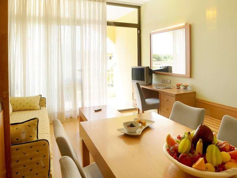 Vaše ubytovanie ponúka nasledovné: Rezort bol zmodernizovaný v roku 2025. 83 apartmánov sa nachádza na 6 poschodiach a je prístupných výťahom. Viacjazyčný personál (angličtina, nemčina, francúzština) na recepcii vo vstupnej hale je vám k dispozícii a pomôže s registráciou a odhlásením. Rezort ponúka úschovňu batožiny, trezor, zmenáreň a predajný automat. V celom objekte je k dispozícii bezplatné Wi-Fi pripojenie na internet. Na turistických informáciách je k dispozícii pomoc s rezerváciou výletov. Na mieste sú tiež obchody. Súčasťou areálu rezortu je krásna záhrada a detské ihrisko. K ďalším zariadeniam patrí TV miestnosť a herňa. Hostia prichádzajúci autom môžu parkovať v garáži (za poplatok) alebo na parkovisku (za poplatok). Medzi ďalšie služby patrí požičovňa áut, transferová služba, izbová služba, práčovňa a súkromný kyvadlový autobus.