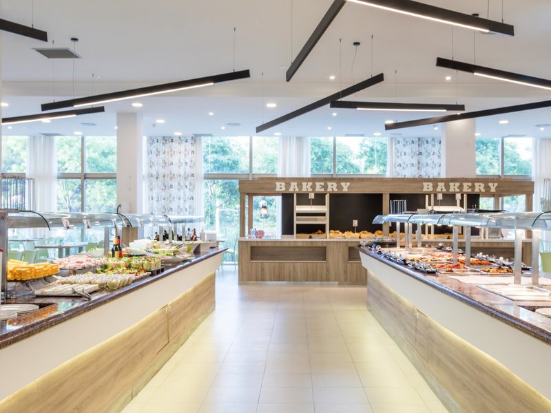 - Hlavná reštaurácia Mediterrani: Kuchyňa: medzinárodná, stredomorská, bezlepkové jedlá: potrebná rezervácia, bezlaktózové jedlá: potrebná rezervácia nie je potrebná, vegetariánske jedlá: potrebná rezervácia nie je potrebná, vegánske jedlá: potrebná rezervácia nie je potrebná, bufet, rezervácia nie je potrebná, apríl - október, denne 8:00 - 10:30, denne 13:00 - 15:00, denne 19:00 - 21:00