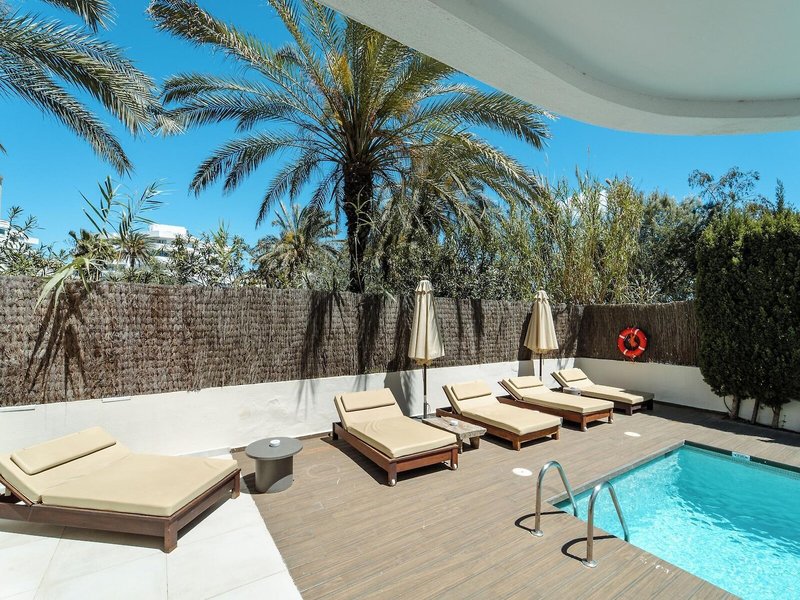 Lage & Umgebung Das Design-Hotel liegt der Nähe des eleganten Hafens Marina Botafoch, nur ca. 100 m vom Meer entfernt. Der Strand sowie das Stadtzentrum von Ibiza mit Einkaufsmöglichkeiten, Touristenzentrum und Restaurants sind in ca. 10 Autominuten zu erreichen. Die öffentlichen Verkehrsmittel liegen etwa 10 m vom Hotelgebäude entfernt. Des Weiteren befinden sich die weltberühmten Diskotheken Pacha und El Divino in ca. 50 m Entfernung zum Hotel.