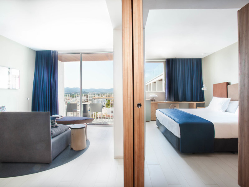 - Junior Suite (JSX1), Juniorsuite, im Hauptgebäude, seitlicher Meerblick, Poolblick, ca. 50 m², letzte Komplettrenovierung 2016, Gesamtanzahl der Räume in diesem Zimmertyp: 1, Aufteilung wie folgt: bestehend aus 2 Zimmern, optisch getrennt durch Schiebetür, 1 King Size Bett, Babybett, Klimaanlage: individuell regelbar, kalt, Fußboden: Fliesenboden, Safe, Sitzecke, Sofa, Schreibtisch, Bügeleisen, Bügelbrett, Nespressomaschine, Minibar: gegen Gebühr, Softdrinks: gegen Gebühr, Wasser: gegen Gebühr, Snacks, Minibarauffüllung, Telefon, Internet: WLAN/WiFi: ohne Gebühr, Breitband-Internet/DSL: ohne Gebühr, Fernseher: Flatscreen, im Schlafzimmer, Roomservice: gegen Gebühr, Reinigungsservice: ohne Gebühr, Tageszeitung: ohne Gebühr, separate Dusche, WC, Bademantel: ohne Gebühr, Slipper, Föhn, Balkon: mit Sitzgelegenheit