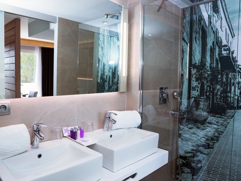 - Suita Deluxe (SUX1), Suita, nefajčiarska izba, cca. 18 - 25 m², posledná čiastočná rekonštrukcia v roku 2023, celkový počet izieb v tomto type izby: 1, rozloženie: obývacia izba/spálňa, detská postieľka: zadarmo, klimatizácia: zadarmo, individuálne ovládaná, centrálne ovládaná, chladenie, teplo, kúrenie: centrálne ovládané, podlaha: dlažba, trezor: za poplatok, písací stôl, telefón, internet: WLAN/WiFi: zadarmo, televízor, upratovacia služba: denne, za poplatok, sprcha, WC, fén, balkón: s posedením