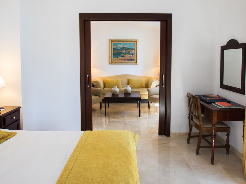 - Junior Suite Terasa/balkón (JSM1), Junior Suite, morská strana, výhľad na more, bočný výhľad na more, výhľad na Stredozemné more, cca 25 - 30 m², celkový počet izieb v tomto type izby: 1, rozloženie: kombinované obývacia izba/spálňa, 2 samostatné postele (90x190cm), 0 manželských postelí, detská postieľka: bez poplatku, nutná rezervácia a vyžiadanie, klimatizácia: centrálne ovládané, kúrenie: centrálne ovládané, podlaha: dláždená podlaha, trezor: bez poplatku, priestor na posedenie , pohovka, písací stôl, minibar: za poplatok, telefón, internet : WLAN/WiFi: zadarmo, televízor: plochá obrazovka, nemecký program, satelitná TV, izbová služba: 8:00 - 23:00, za poplatok , vaňa alebo sprcha, WC, župan: za poplatok, papuče: zdarma, fén, balkón alebo terasa: s posedením