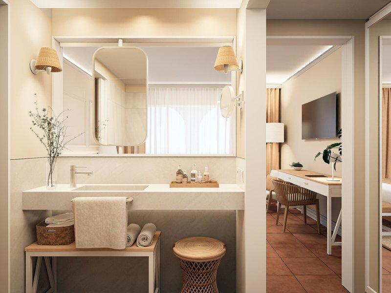 - Double room Pool view (DZX2), Doppelzimmer, Nichtraucherzimmer, im Hauptgebäude, Neubau, Poolblick, Gartenblick, ca. 26 m², Gesamtanzahl der Räume in diesem Zimmertyp: 1, Aufteilung wie folgt: 1 Schlafzimmer, Babybett: ohne Gebühr, Klimaanlage: ohne Gebühr, kalt, warm, Fußboden: Fliesenboden, Safe: gegen Gebühr, Schreibtisch, Minibar: gegen Gebühr, Telefon, Internet: WLAN/WiFi: ohne Gebühr, Fernseher: Flatscreen, im Schlafzimmer, deutsches Programm, Sat-TV, Reinigungsservice: ohne Gebühr, Badewanne oder Dusche, WC, Föhn, Kosmetikspiegel, Balkon