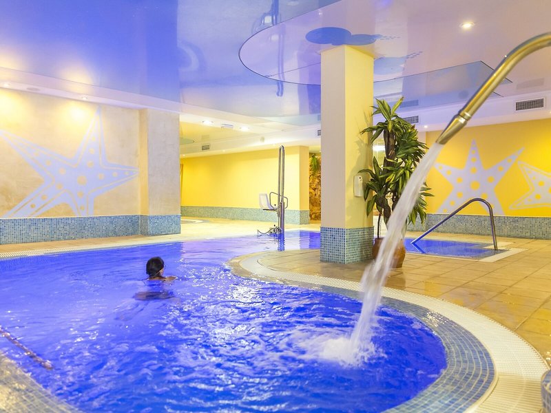 Sport & Fitness: Ein Außenpool und ein Hallenbad laden zum entspannten Badevergnügen ein. Kinder können sich in einem Planschbecken austoben. Erfrischende Getränke an der Pool-/Snackbar und wohlige Entspannung im Whirlpool bringen alle Wasserratten in die beste Stimmung. Auf der Sonnenterrasse sind Liegestühle und Schirme vorhanden. Wem der Sinn nach Bewegung steht, werden Radfahren/Mountainbiking, Boccia und Bogenschießen angeboten. Tischtennis, Billard und Darts sind Teil des Sport- und Freizeitangebots des Hotels. Die Unterbringung verfügt über einen Wellnessbereich mit einem Spa, einem Hammam und Thalasso-Anwendungen sowie gegen zusätzliche Gebühr eine Sauna, ein Dampfbad, einen Schönheitssalon und Massage-Anwendungen. Ein Animationsprogramm und Live-Musik runden das Angebot ab.
