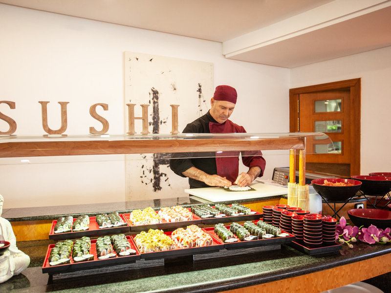 • Restaurant: Küche: international, italienisch, landestypisch, mediterran, orientalisch, regional, spanisch, Fisch/Meeresfrüchte, Sushi, glutenfreie Gerichte, lactosefreie Gerichte, vegetarische Gerichte, vegane Gerichte, Buffet, Showcooking, mit Terrasse, angemessene Kleidung erwünscht