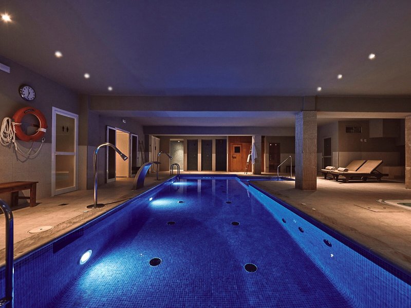 - Bazény: Vnútorný bazén, vonkajší bazén, slnečníky pri bazéne, ležadlá pri bazéne