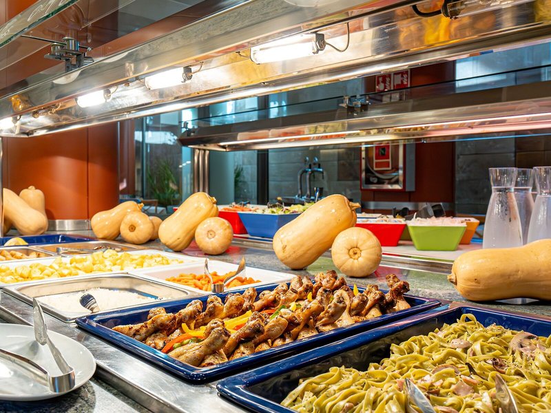 Essen & Trinken: Die gastronomischen Einrichtungen umfassen ein Restaurant, ein Café und eine Bar. Es kann Halbpension gebucht werden. Ein leckeres und reichhaltiges Buffet erwartet die Gäste zum Frühstück, Mittag- und Abendessen. Bei Bedarf werden auch Kindermenüs zubereitet. Darüber hinaus stellt das Hotel Snacks bereit. Eine besondere Attraktion ist das Showcooking.