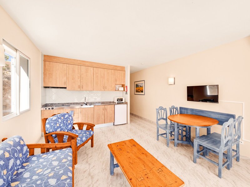 Ubytovanie: Izby sú vybavené obývacou izbou, kuchyňou a kúpeľňou. Klimatizácia a kúrenie zabezpečujú príjemnú vnútornú klímu. Hostia si môžu vychutnať výhľad na bazén z balkóna alebo terasy. Hostia sa môžu pohodlne vyspať na rozkladacej pohovke. K dispozícii sú samostatné spálne. Pre mladších hostí sú k dispozícii aj detské postieľky. K dispozícii je aj trezor a minibar. Kuchynka je dobre vybavená na vlastné varenie s chladničkou, sporákom, mikrovlnnou rúrou, zariadením na prípravu čaju/kávy a rúrou. Pre pohodlie hostí je k dispozícii žehliaca súprava. Okrem toho je k dispozícii telefón, TV, rádio a WiFi (bezplatne). Kúpeľňa so sprchovacím kútom a vaňou obsahuje aj sušič vlasov. Pre väčšie pohodlie je k dispozícii výber uterákov. Apartmánový hotel ponúka rodinné izby a 99 nefajčiarskych izieb.
