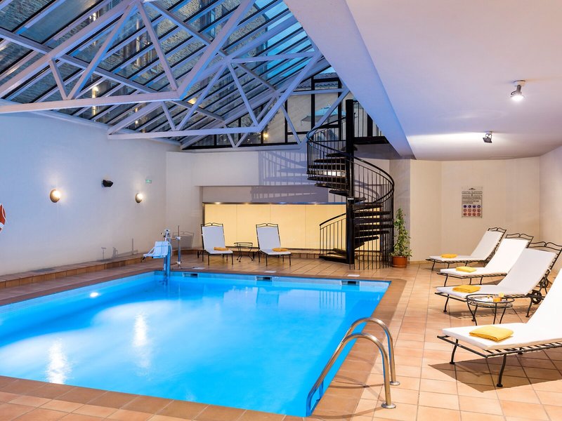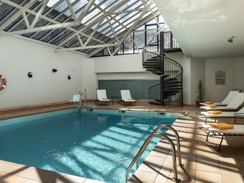 - Bazény: Vnútorný bazén, vonkajší bazén, slnečníky pri bazéne, ležadlá pri bazéne