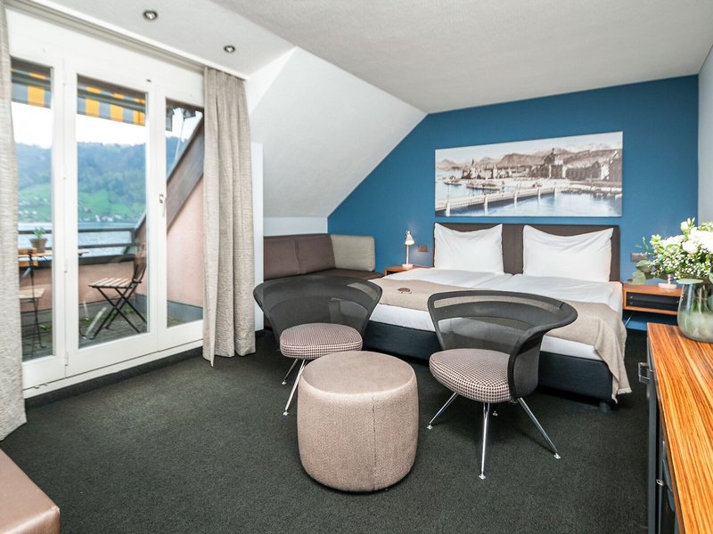 Lage & Umgebung Das Hotel bietet eine malerische Lage am Seeufer auf der Horw-Halbinsel und ist gleichzeitig nur rund 15 Fahrminuten von der Altstadt Luzerns entfernt. Nach rund 30 min Fahrtzeit kann man gleich 5 18-Loch-Golfplätze und 2 9-Loch-Golfplätze erreichen.