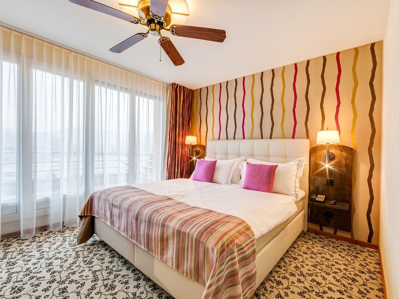 Vaše ubytovanie: Izby sú vybavené klimatizáciou, kúrením a ventilátorom. Väčšina izieb má štandardne balkón alebo terasu. Izby s kobercom majú manželskú posteľ, posteľ veľkosti king alebo rozkladaciu pohovku. K dispozícii sú samostatné spálne. Prístelky je možné požiadať. K dispozícii je aj trezor, minibar a písací stôl. Štandardom je príslušenstvo na prípravu čaju a kávy. Pre pohodlie hostí je k dispozícii žehliaca súprava. Okrem toho je k dispozícii telefón s priamou voľbou, TV so satelitnými/káblovými programami, rádio, CD prehrávač, DVD prehrávač a bezplatné Wi-Fi pripojenie na internet. K dispozícii sú papuče. Kúpeľne sú vybavené sprchovacím kútom a vaňou. K dispozícii je sušič vlasov, kozmetické zrkadlo, župany a telefón na každodenné použitie. V kúpeľniach nájdu hostia aj bezplatné toaletné potreby a výber uterákov. K dispozícii sú bezbariérové izby. Pre rodičov s deťmi sú k dispozícii rodinné izby.
