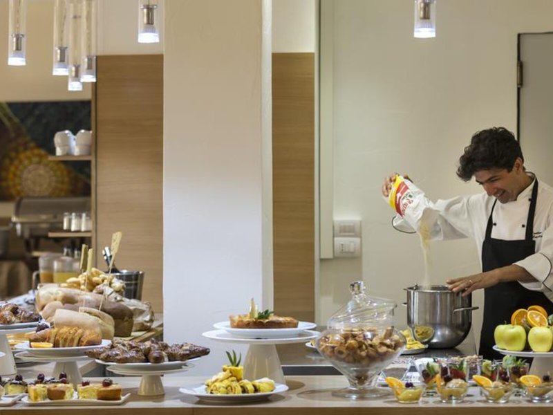 Essen & Trinken: Die gastronomischen Einrichtungen umfassen ein Café und eine Bar. Verschiedene Spezialitäten erwarten die Gäste in einem Nichtraucherrestaurant mit Klimaanlage. Das Haus bietet als buchbare Verpflegungsleistungen Übernachtung inkl. Frühstück, Halbpension und Vollpension. Ein reichhaltiges Frühstücksbuffet, Mittagessen und Abendessen sind lecker und abwechslungsreich gestaltet. Diätgerichte und Kindermenüs werden auf Wunsch zubereitet. Darüber hinaus stellt die Unterbringung spezielle Verpflegungsangebote bereit. Eine besondere Attraktion ist das Showcooking.