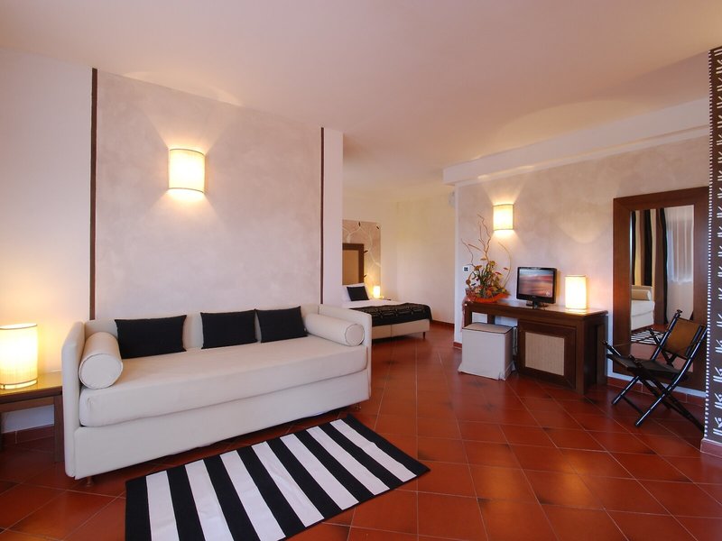 So wohnen Sie: In den Zimmern gibt es eine Klimaanlage und eine individuell steuerbare Heizung. Die Gäste können den Gartenblick von Balkon oder Terrasse genießen. Die Zimmer verfügen über ein Queensizebett und ein Sofabett. Zustellbetten können angefordert werden. Außerdem sind ein Safe, eine Minibar und ein Schreibtisch verfügbar. Auch ein Kühlschrank und ein Minikühlschrank sind vorhanden. Darüber hinaus sind ein Telefon mit Direktwahl, ein TV-Gerät mit Satelliten-/Kabelempfang und WiFi vorhanden. Die Badezimmer sind ausgestattet mit einer Dusche, einer Badewanne und einem Bidet. Des Weiteren ist ein Haartrockner vorhanden. Für besonderen Komfort in den Badezimmern sorgen Kosmetikartikel. Außerdem sind rollstuhlgerechte Zimmer mit barrierefreiem Badezimmer buchbar. Für Eltern mit Kindern stehen Familienzimmer zur Verfügung.