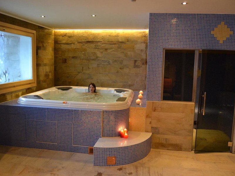 Sport & Fitness: Auf der Terrasse können die Urlauber schönes Wetter genießen. Wohlige Entspannung verspricht der Whirlpool im Badebereich. Abwechslung bieten verschiedene Angebote, darunter Skifahren, ein Fitnessstudio, ein Spa, eine Sauna und ein Dampfbad.