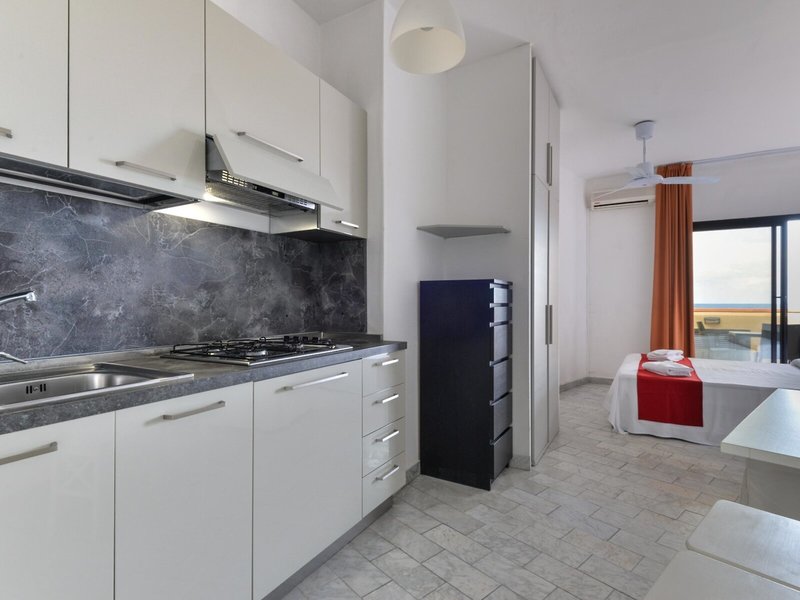 - Štúdio (STX1), štúdio, cca 18 - 25 m², celkový počet izieb v tomto type izby: 1, rozloženie: kombinovaná obývacia izba/spálňa, 1 manželská posteľ, 1 rozkladacia pohovka, detská postieľka: cca 5 EUR za deň, klimatizácia: zadarmo, individuálne nastaviteľná, studená, teplá, podlaha: dlažba, kuchynský kút, chladnička, plynový/elektrický sporák, espresso kávovar, jedálenský stôl, telefón, Internet: WLAN/WiFi: zadarmo, TV: v obývacej časti, satelitná TV, programy SKY, sprcha, WC, sušič vlasov, dodatočné poplatky: elektrina: bez poplatku, plyn: bez poplatku, záverečné upratovanie: bez poplatku, voda: bez poplatku