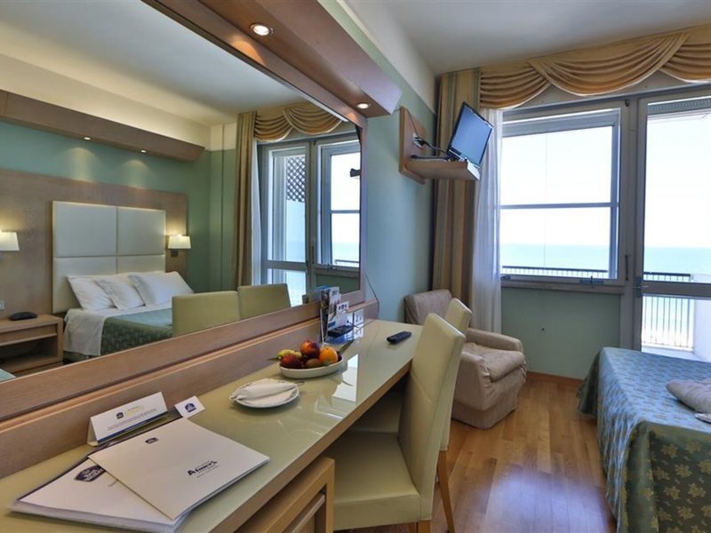 Lage & Umgebung Das Hotel liegt direkt am Strand, in zentraler Lage in Riccione.