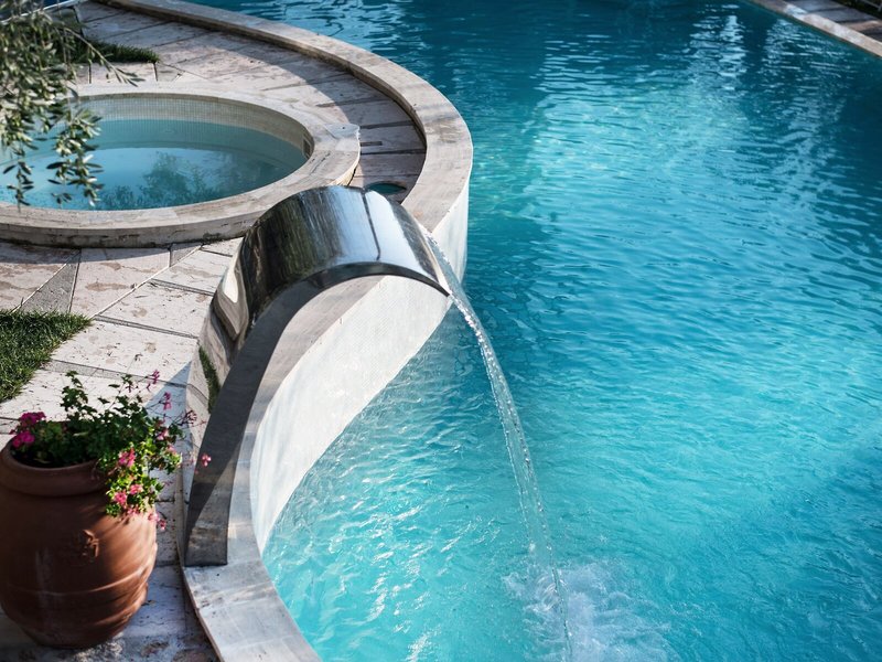 - Bazény: Vnútorný bazén, vonkajší bazén, slnečníky pri bazéne, ležadlá pri bazéne