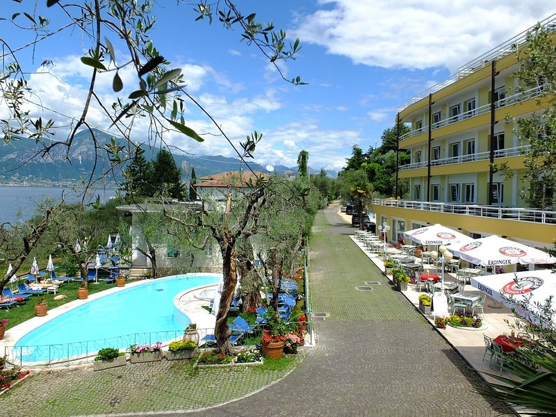 Poloha a okolie Tento rodinný hotel sa nachádza v Garde, na jednom z miest s najkrajším výhľadom. Do centra Torri del Benaco je to asi 1,5 km a do mesta sa ľahko dostanete po chodníkoch. Jazero Garda je vzdialené len asi 10 m a mesto Verona, ktoré preslávili Shakespearov Romeo a July, je vzdialené asi 40 km. Letiská Verona a Orio al Serio sú vzdialené asi 40 km a letisko Orio al Serio 106 km.