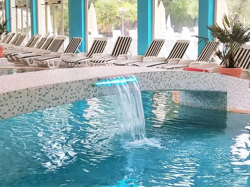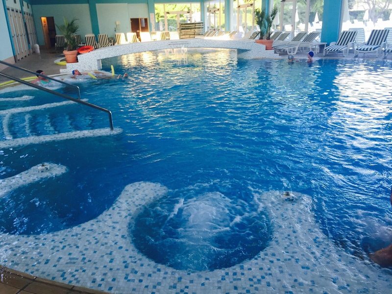 Šport a fitnes: Príjemne vyhrievaná voda vo vnútornom aj vonkajšom bazéne zaisťuje zdravý zážitok z kúpania. Osviežujúce nápoje v bare pri bazéne/snack bare a relax vo vírivke naladia všetkých milovníkov vody. Dovolenku si môžete vychutnať na slnečnej terase s ležadlami a slnečníkmi. Pre tých, ktorí majú chuť na aktívny oddych, je k dispozícii cyklistika/horská cyklistika a tenis. Súčasťou športovej a rekreačnej ponuky hotela je posilňovňa, stolný tenis a aerobik. Ubytovanie ponúka rôzne wellness možnosti vrátane kúpeľov, sauny, parného kúpeľa, kozmetického salónu, masáží, hydroterapie a solária. Ponuku dopĺňa animačný program a živá hudba.