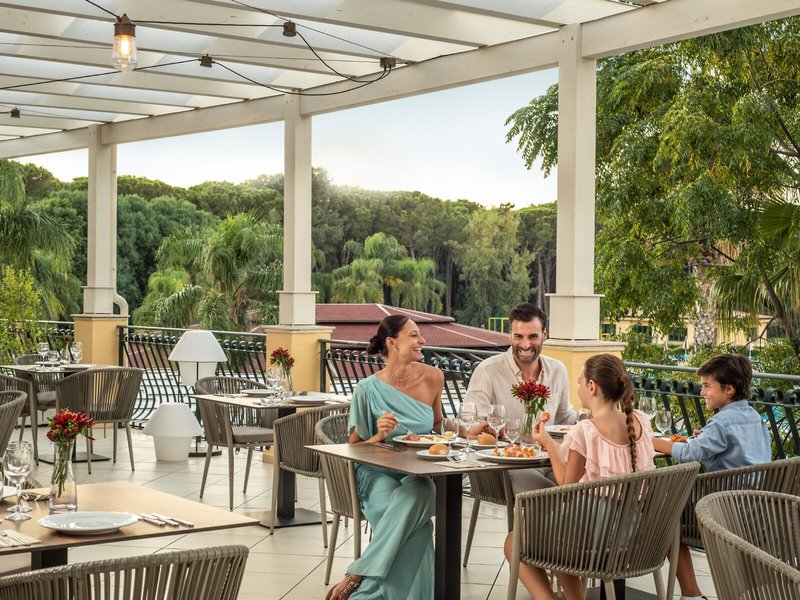 - Hlavná reštaurácia IL GIARDINO: Kuchyňa: talianska, stredomorská, regionálna, bezlepkové jedlá, bezlaktózové jedlá, sezónne jedlá, vegetariánske jedlá, bufet, show cooking, denne 7:00 - 10:00, 12:30 - 14:30, 19:30 – 21:30 a 15:00 – 21:30, klimatizované, s terasou, vysokou stoličkou