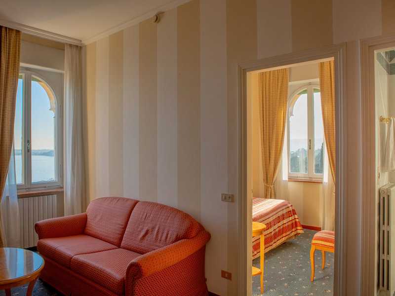 - Juniorsuite Lakeview Terrace (JSS2), Juniorsuite, im Hauptgebäude, Seeseite, Seeblick, ca. 30 - 35 m², Gesamtanzahl der Räume in diesem Zimmertyp: 1, Aufteilung wie folgt: kombiniertes Wohn-/Schlafzimmer, 1 Doppelbett, 1 Zustellbett, Babybett: pro Tag ca. 20.00 EUR, Reservierung notwendig, Klimaanlage: ohne Gebühr, saisonabhängig, individuell regelbar, zentral gesteuert, Heizung: wetterabhängig, Safe: ohne Gebühr, Sitzecke, Schreibtisch, Esstisch, Minibar: gegen Gebühr, Telefon, Internet: WLAN/WiFi: ohne Gebühr, Fernseher: deutsches Programm, Sat-TV, Roomservice: gegen Gebühr, Reinigungsservice: ohne Gebühr, Badewanne oder Dusche, WC, Bademantel: ohne Gebühr, Slipper: ohne Gebühr, Föhn, Terrasse: mit Sitzgelegenheit