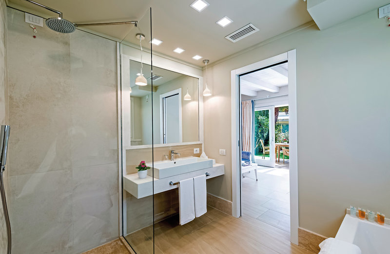 • 21-25 qm, Bungalow, Deluxe, Erdgeschoss, renoviert, Dusche, Badewanne, WC, Haartrockner, Klimaanlage, Minibar kostenpflichtig, Safe, 1 TV (Sat-TV), WLAN, Terrasse, Garten