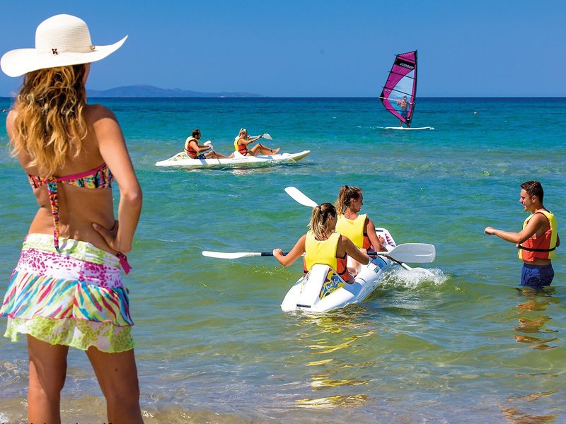 Sport & Fitness: Die Außenpoolanlage mit Kinderbereich eignet sich hervorragend für aktive Erholung und regelmäßiges Aquatraining. Auf der Sonnenterrasse mit Liegestühlen und Schirmen lässt sich der Urlaub genießen. An der Poolbar erwarten die Gäste diverse Erfrischungsgetränke. Abwechslung bieten verschiedene Angebote, darunter Boccia, Bogenschießen, Tretbootfahren und Kanufahren. Ein Animationsprogramm, ein Miniclub, Live-Musik und ein Nachtclub sorgen für besten Freizeitspaß.