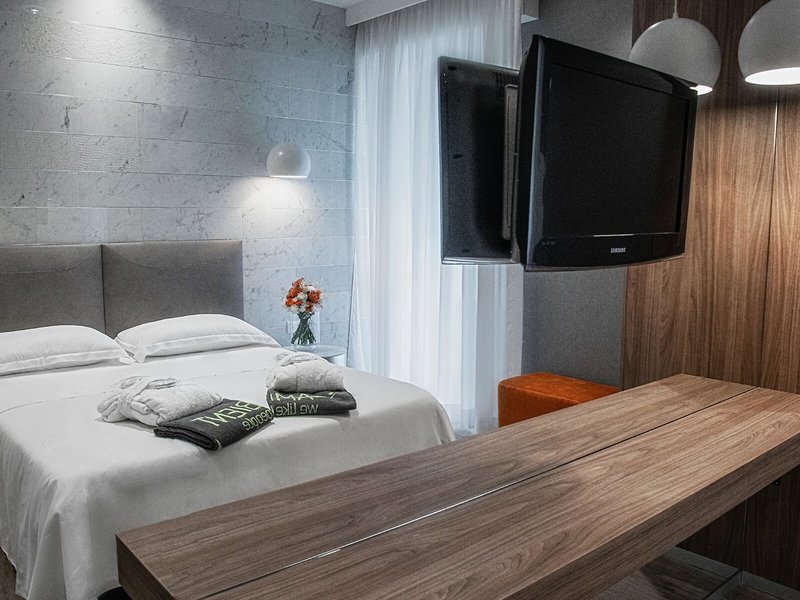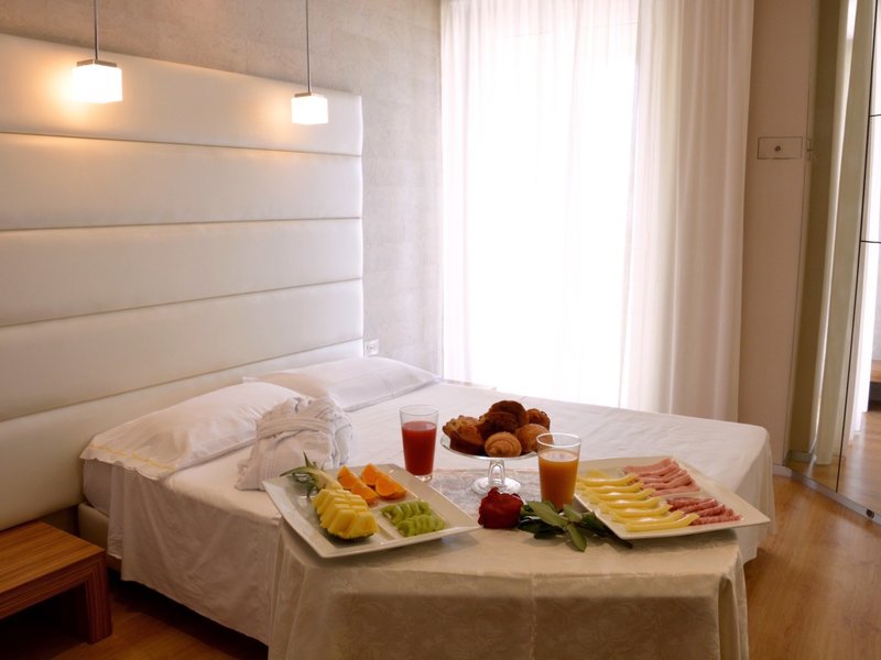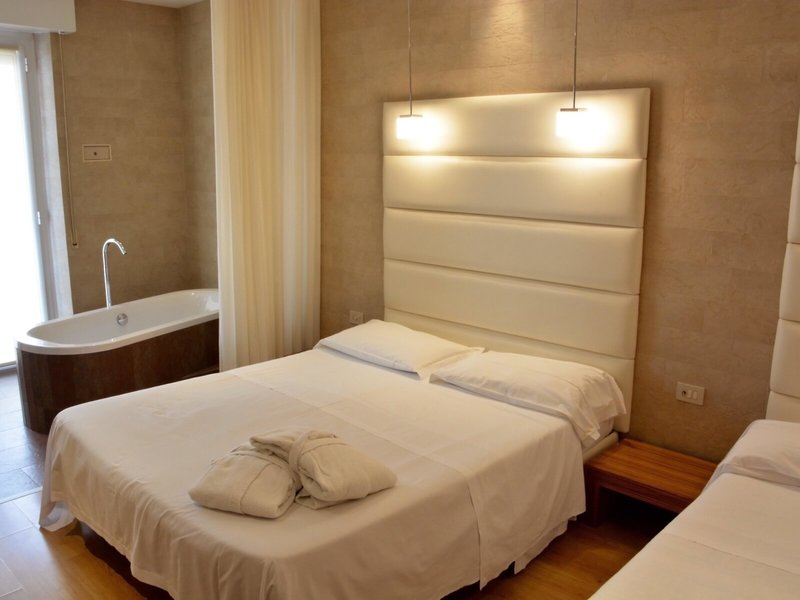 - Double Bedroom Tech Balcone (DZX3), dvojlôžková izba, nefajčiarska izba, v hlavnej budove, bočný výhľad na more, cca 14 - 20 m², posledná kompletná rekonštrukcia v roku 2010, celkový počet izieb v tomto type izby: 1, dieťa. detská postieľka: bez poplatku, vyžiadanie a rezervácia nutná, klimatizácia: bez poplatku, individuálne nastaviteľná, centrálne ovládaná, studená, teplá, kúrenie: individuálne nastaviteľná, podlaha: dlažba, trezor: bez poplatku, písací stôl, minibar: za poplatok, mäkké nápoje: za poplatok, voda: za poplatok, alkoholické nápoje: za poplatok, telefón, internet: WLAN/WiFi: zadarmo, televízia: v spálni, nemecké programy, satelitná TV, rádio, CD prehrávač, upratovacia služba , vaňa alebo sprcha, WC, fén, kozmetické zrkadlo, balkón