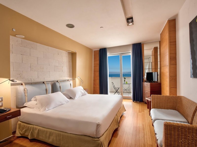 • Dvojlôžková izba Superior s výhľadom na more (DZM7), dvojlôžková izba, nefajčiarska izba, v hlavnej budove, morská strana, výhľad na more, cca 18 - 22 m², celkový počet izieb v tomto type izby: 1, rozloženie: 1. spálňa, klimatizácia: zadarmo, centrálne ovládané, Kúrenie: centrálne ovládané, trezor: zadarmo, písací stôl, žehlička, žehliaca doska, chladnička, príslušenstvo na prípravu kávy/čaju, minibar: voda, Internet: WLAN/WiFi: zadarmo poplatok, TV: satelitná TV, izbová služba, upratovacia služba, francúzsky balkón