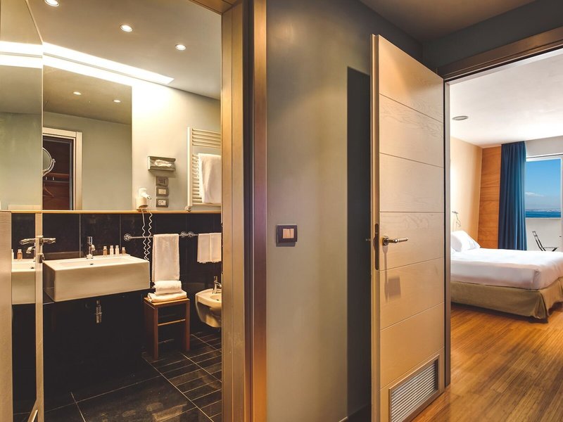• Dvojlôžková izba Superior s výhľadom na more (DZM8), dvojlôžková izba, nefajčiarska izba, minimálny vek v izbe: 18 rokov, v hlavnej budove, morská strana, výhľad na more, cca 18 - 22 m², celkový počet izieb v tejto typ izby: 1, rozloženie: 1 spálňa, Detská postieľka, klimatizácia: zadarmo, centrálne ovládané, kúrenie: centrálne ovládané, podlaha: parkety, trezor: zdarma, pohovka, písací stôl, žehlička, žehliaca doska, chladnička , príslušenstvo na prípravu kávy/čaju, minibar: voda, telefón, internet: WLAN/WiFi: bez poplatku, televízia: satelitná TV, izbová služba, upratovacia služba, vaňa alebo sprcha, WC, sušič vlasov, kozmetické zrkadlo, balkón alebo terasa