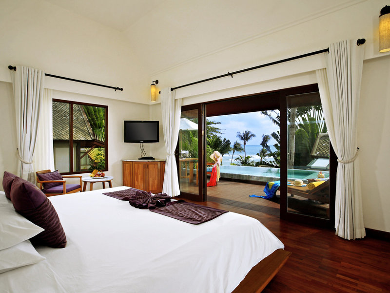 - Deluxe Private Pool (BUX4), Villa, Nichtraucherzimmer, Gartenseite, Gartenblick, ca. 60 m², Gesamtanzahl der Räume in diesem Zimmertyp: 1, Aufteilung wie folgt: kombiniertes Wohn-/Schlafzimmer, 1 King Size Bett (180x195cm), 1 Zustellbett, Babybett: Anfrage notwendig, Klimaanlage: individuell regelbar, Fußboden: Parkett, Safe: ohne Gebühr, Deckenventilator, Kaffee-/Teezubereiter, Minibar: gegen Gebühr, Minibarauffüllung: täglich, Telefon, Internet: WLAN/WiFi: gegen Gebühr, Fernseher: Flatscreen, Sat-TV, DVD-Player, Roomservice: gegen Gebühr, Dusche, WC, Bademantel, Slipper, Föhn, Balkon oder Terrasse: mit Liegestühlen, mit Plunge Pool