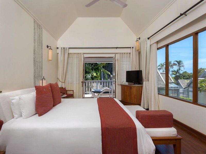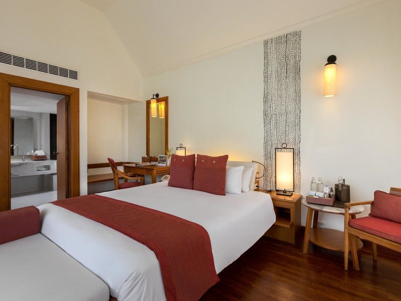- Deluxe Garden View (BUX2), Villa, Gartenseite, Gartenblick, ca. 42 m², letzte Teilrenovierung 2017, Gesamtanzahl der Räume in diesem Zimmertyp: 1, Aufteilung wie folgt: kombiniertes Wohn-/Schlafzimmer, 1 King Size Bett (180x195cm), 1 Zustellbett, Babybett: Anfrage notwendig, Klimaanlage: individuell regelbar, kalt, Fußboden: Fliesenboden, Parkett, Safe: ohne Gebühr, Deckenventilator, Sitzecke, Schreibtisch, Kaffee-/Teezubereiter, Minibar: gegen Gebühr, Minibarauffüllung: täglich, Telefon, Internet: WLAN/WiFi: gegen Gebühr, Fernseher: Flatscreen, im Schlafzimmer, Deutsche Welle, Sat-TV, Roomservice: gegen Gebühr, Reinigungsservice, Dusche, WC, Slipper, Föhn, Kosmetikspiegel, Balkon oder Terrasse: mit Liegestühlen