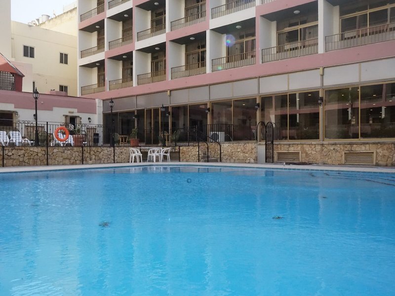 Poloha a okolie: Hotel sa nachádza v centre mesta Bugibba. V bezprostrednej blízkosti sa nachádzajú ďalšie štyri hotely, ako aj rôzne (vinárske) bary a puby. Medzinárodné kasíno a záliv St. Paul's Bay sú v pešej vzdialenosti. Mosta je vzdialená len asi 3 km a hlavné mesto Valletta je vzdialené približne 10 km.