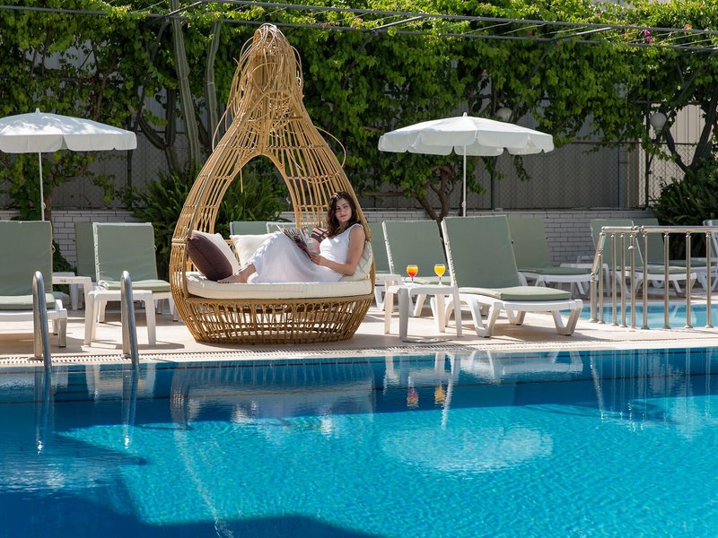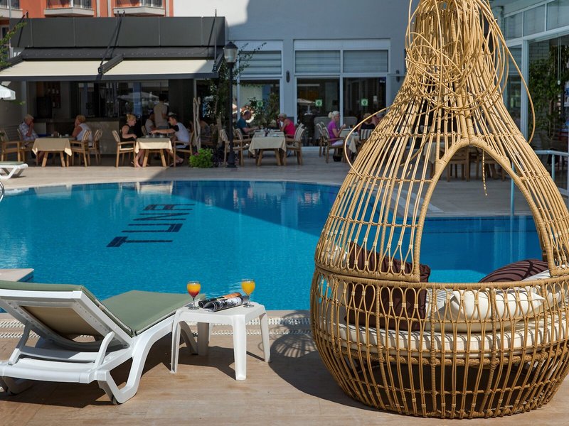 Šport a fitnes: Vonkajší bazén s detskou časťou je ideálny na aktívny oddych a pravidelné vodné cvičenie. Na terase sú k dispozícii pohodlné ležadlá a slnečníky. Osviežujúce nápoje sa podávajú v bare pri bazéne. Ponúka sa široká škála aktivít vrátane plážového volejbalu a fitnescentra.