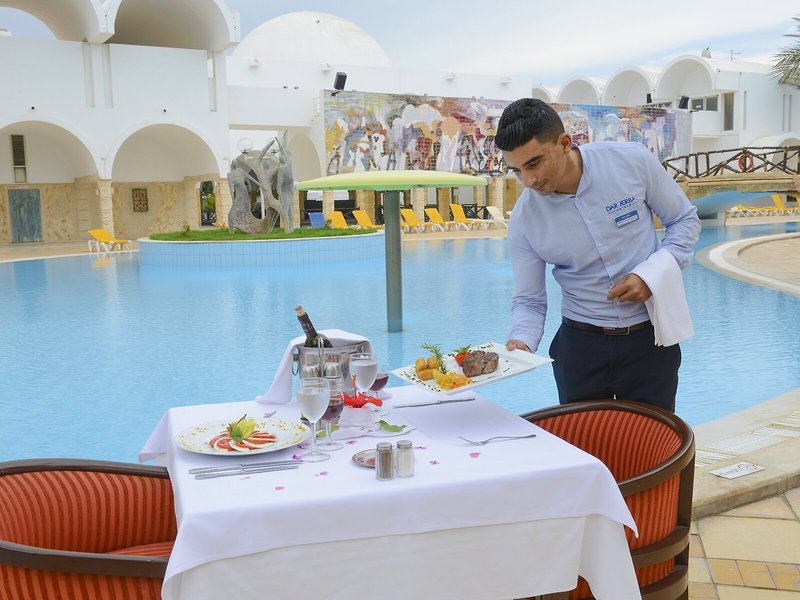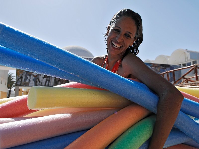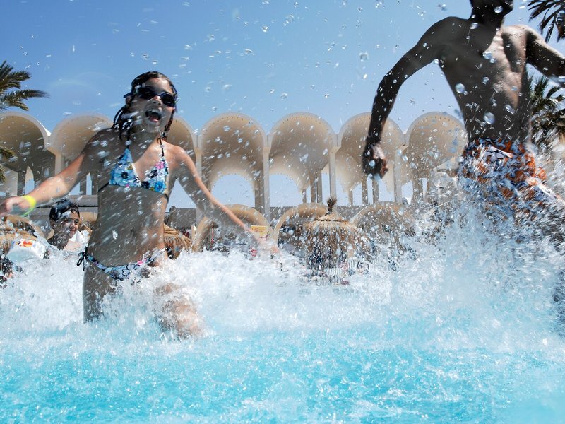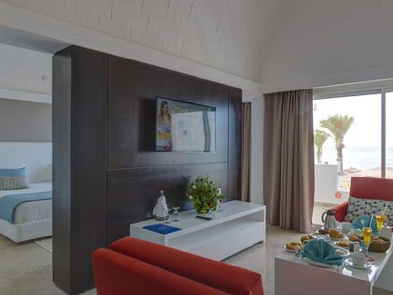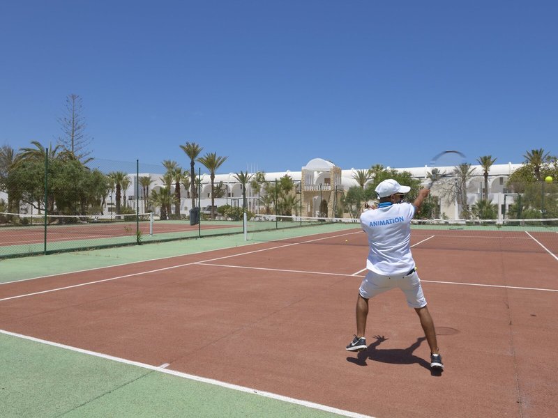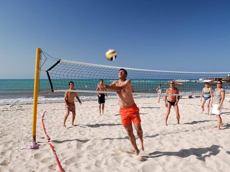 Sport & Fitness: Außer Innen- und Außenpools gibt es einen Kinderbadebereich. Eine Sonnenterrasse lädt zum Verweilen ein. Eine Pool-/Snackbar ist vorhanden. Die Unterbringung bietet ein umfangreiches Outdoor-Sportprogramm mit Tennis, Boccia, Beachvolleyball, Basketball und Minigolf. Zum Strand- und Wassersportangebot gehört Aqua-Fitness. Zur sportlichen Betätigung im Hotel stehen den Gästen ein Fitnessstudio und gebührenpflichtig Tischtennis zur Auswahl. Ein Wellnessbereich mit einem Spa ist für Gäste verfügbar. Gegen Gebühr gibt es ein Hammam. Kinder können im Miniclub (ohne Gebühr) spielen und in der Minidisco tanzen und singen.