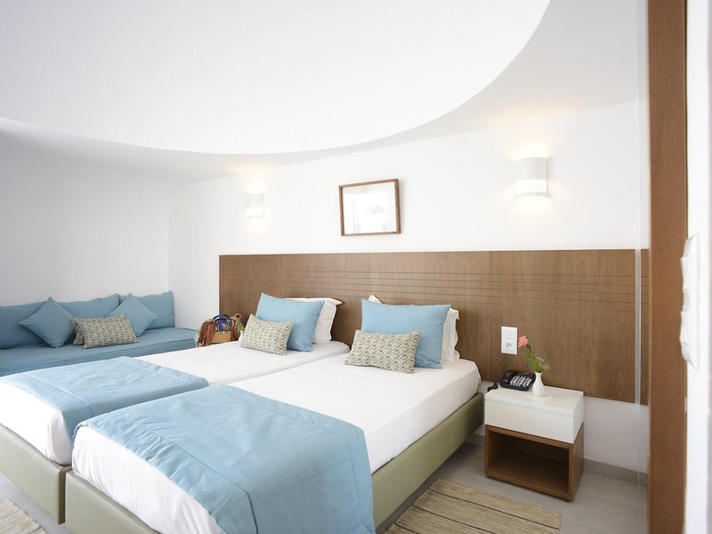 Ako sa ubytujete: Izby majú klimatizáciu a kúrenie. Hostia si môžu vychutnať výhľad na more z balkóna alebo terasy. K dispozícii sú aj detské postieľky a prístelky. Hostia si môžu za poplatok uložiť svoje cennosti v trezore. Štandardom je aj mini chladnička. Telefón, satelitná TV a WiFi (zdarma) zaisťujú optimálny komfort. Kúpeľňa je vybavená sprchovacím kútom a vaňou a sušičom vlasov. Pre rodičov s deťmi sú k dispozícii rodinné izby.