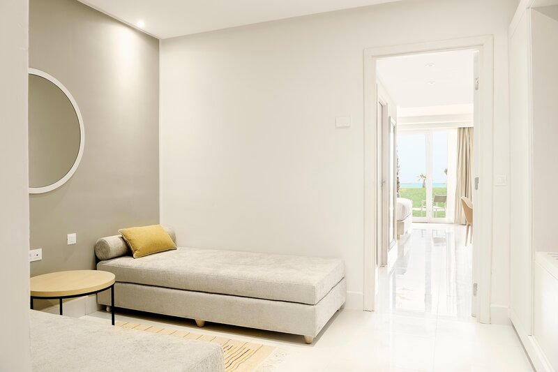 Junior Suite (JS, cca 55 m²), zrekonštruovaný, klimatizácia (chladenie, cca 01.05.-31.10.; teplé, cca 01.12.-31.03.), TV, Wi-Fi, minibar. Kúpeľňa/sprcha, WC, fén. Balkón. Max. 2 dospelí + 2 deti.