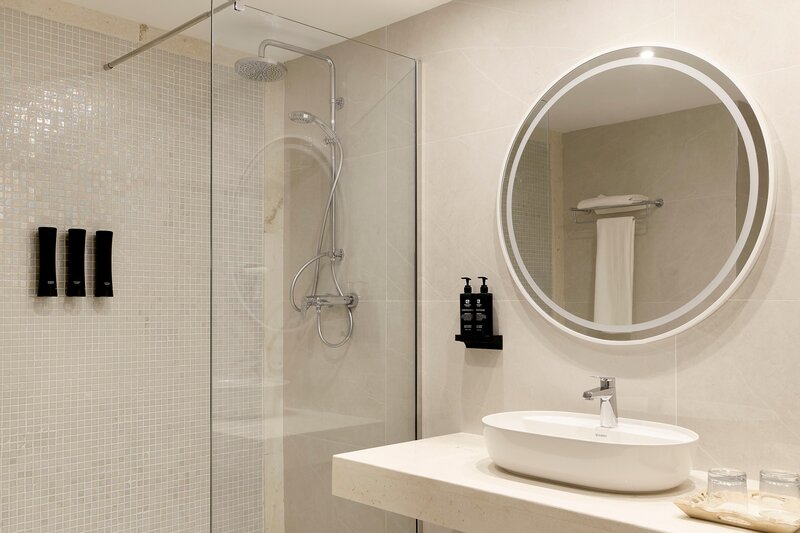 Juniorsuite (JS, ca. 55 qm), renoviert, Klimaanlage (kalt, ca. 01.05.-31.10.; warm, ca. 01.12.-31.03.), TV, WLAN, Minibar. Bad/Dusche, WC, Föhn. Balkon. Max. 2E+2K.