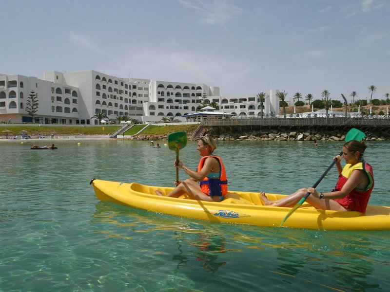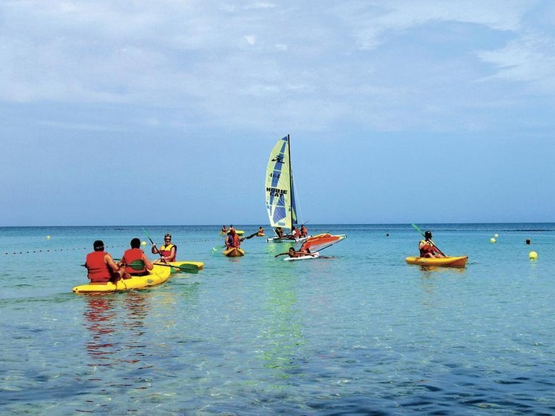 Sport & Fitness: Neben Innen- und Außenpools gibt es einen Kinderbadebereich. Erfrischende Getränke an der Pool-/Snackbar und wohlige Entspannung im Whirlpool bringen alle Wasserratten in die beste Stimmung. Auf der Sonnenterrasse mit Liegestühlen und Schirmen lässt sich der Urlaub genießen. Sportliche Abwechslung bieten viele verschiedene Aktivitäten, die in dem Haus angeboten werden, wie z.B. Radfahren/Mountainbiking, Tennis, Boccia, Beachvolleyball und Golfen. Eine Vielzahl an Sportarten steht zur Auswahl, darunter Wassersportmöglichkeiten wie Windsurfen, Jetskifahren, Tretbootfahren, Kanufahren, Kajakfahren, Tauchen und Aqua-Fitness und gegen Gebühr Katamaranfahren. Das Hotel bietet Sportfreunden auch viele Aktivitäten im Innenbereich, nämlich Tischtennis, Billard, Darts und Aerobic. In der Unterbringung werden verschiedene Wellnessangebote wie Spa, Sauna, Dampfbad, Hammam, Schönheitssalon, Massage-Anwendungen, Kuranwendungen, Hydrotherapie-Anwendungen, Anti-Aging-Anwendungen und Solarium offeriert. Ein Animationsprogramm, ein Miniclub, Live-Musik, eine Disco und ein Nachtclub sorgen für besten Freizeitspaß.