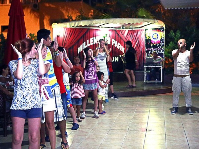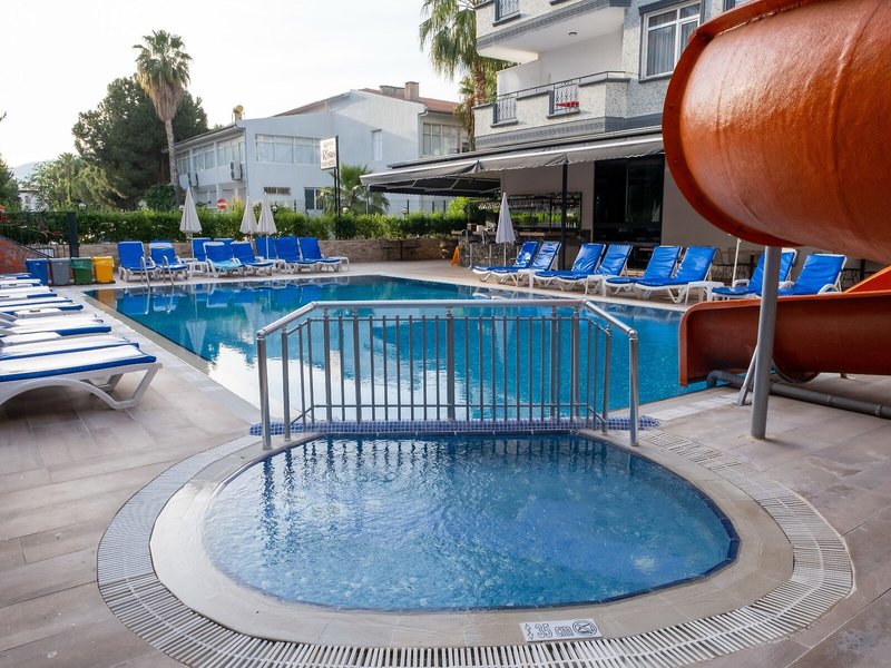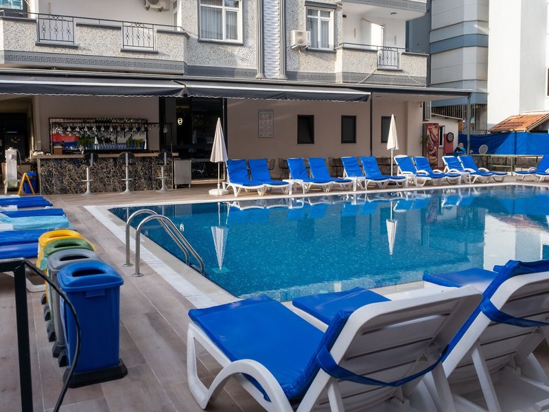 Šport a fitnes: Zatiaľ čo dospelí si zaplávajú vo vonkajšom bazéne, deti sa môžu zabaviť v detskom bazéniku. Osviežujúce nápoje v bare pri bazéne a tobogán naladia všetkých milovníkov vody. Lehátka pod slnečníkmi na slnečnej terase vás pozývajú k relaxu. Hotelový program vodných športov zahŕňa vodné skútre, jazdu na motorovom člne, jazdu na vodných bicykloch, jazdu na banánovom člne a potápanie. Stolný tenis a šípky sú súčasťou športovej a rekreačnej ponuky apartmánového hotela. Objekt ponúka rôzne wellness možnosti vrátane kúpeľov, sauny, parného kúpeľa, hammamu a masážnych procedúr. Hostia všetkých vekových kategórií si môžu spestriť pobyt zábavnými programami.