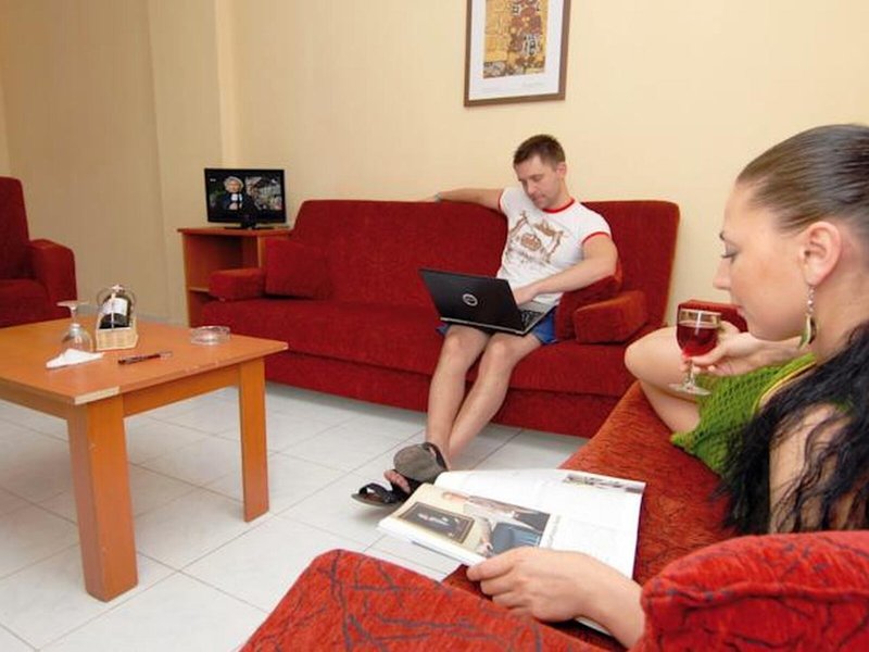 Vaše ubytovanie ponúka: Apartmánový hotel s výťahom má 56 apartmánov. Recepcia vo vstupnej hale je otvorená 24 hodín denne. K vybaveniu patrí zmenáreň. Wi-Fi je k dispozícii za poplatok. Na turistických informáciách je k dispozícii pomoc s rezerváciou výletov. Hotel má bezbariérové zariadenia. K dispozícii sú aj obchody. Súčasťou areálu apartmánového hotela je krásna záhrada a detské ihrisko. Medzi ďalšie vybavenie patrí TV miestnosť a herňa. Hostia prichádzajúci autom môžu parkovať v garáži (za poplatok) alebo na parkovisku. Medzi ďalšie služby patrí požičovňa áut, lekárska pomoc, transferová služba, služba budenia, práčovňa, kaderníctvo a hotelový lekár.
