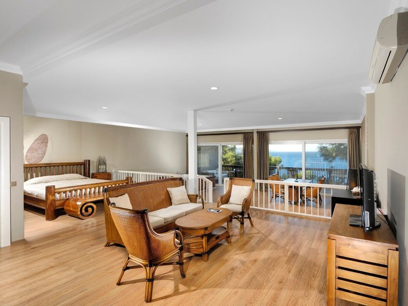 - Superior Suite (DZM2), Suita, Nefajčiarska izba, v prístavbe, morská strana, výhľad na more, cca 45 m², posledná kompletná rekonštrukcia 2016, posledná čiastočná rekonštrukcia 2021, celkový počet izieb tohto typu: 1, dispozícia: kombinovaná obývacia izba/spálňa, 1 manželská posteľ (180x200cm), detská postieľka: zadarmo, nutná žiadosť a rezervácia, moskytiéra, klimatizácia: zadarmo, individuálne ovládaná, studená, teplá, podlaha: laminátová, trezor: zadarmo, pohovka, písací stôl, kávovar/čajník, rýchlovarná kanvica, minibar: zadarmo, nealkoholické nápoje: za poplatok, voda: zadarmo, zahrnuté v cene All Inclusive, alkoholické nápoje: za poplatok, dopĺňanie minibaru: denne, telefón, internet: Wi-Fi: zadarmo, TV: plochá obrazovka, nemecké kanály, satelitná TV, izbová služba: denne 10:00 - 22:00, za poplatok, upratovacia služba: denne, zadarmo, sprcha. Vaňa s integrovanou vírivkou, WC, papuče: zdarma, sušič vlasov, balkón alebo terasa: s posedením