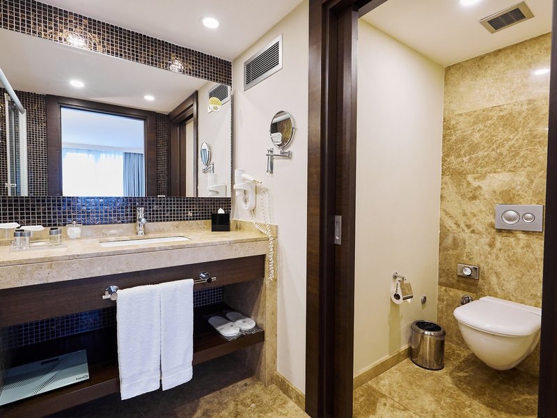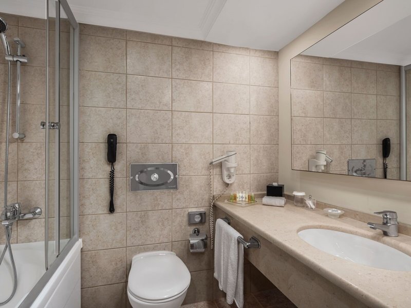 Vaše ubytovanie: Klimatizácia a kúrenie zabezpečujú príjemnú klímu v izbách. Izby s kobercami sú vybavené manželskou posteľou, posteľou veľkosti queen alebo king. K dispozícii je aj trezor, minibar a písací stôl. Štandardom je aj príslušenstvo na prípravu kávy/čaju. Pre pohodlie hostí je k dispozícii žehliaca súprava. Okrem toho je k dispozícii telefón s priamou voľbou, TV so satelitnými/káblovými programami, rádio a Wi-Fi pripojenie (bezplatné). K vybaveniu izieb patria papuče. Kúpeľňa so sprchovacím kútom a vaňou ponúka aj sušič vlasov a telefón. Ako špeciálne vybavenie sú k dispozícii toaletné potreby a výber uterákov. K dispozícii sú bezbariérové izby. Rodičia s deťmi majú k dispozícii rodinné izby.