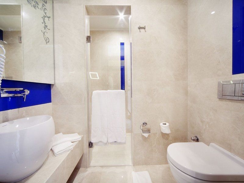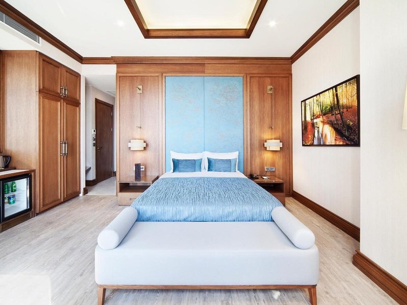 Vaše ubytovanie: Klimatizácia a kúrenie zabezpečujú príjemnú vnútornú klímu v izbách. Hostia si môžu oddýchnuť a vychutnať si výhľad na more na balkóne alebo súkromnej terase väčšiny izieb. Izby s kobercami sú vybavené manželskou posteľou veľkosti king a rozkladacou pohovkou. Prístelky je možné vyžiadať. K dispozícii je aj trezor, minibar a písací stôl. K dispozícii je aj chladnička, mikrovlnná rúra, príslušenstvo na prípravu kávy/čaju a umývačka riadu. Telefón, satelitná televízia a WiFi (bezplatné) poskytujú najlepší komfort počas dovolenky. K vybaveniu izby patria papuče. Kúpeľňa je vybavená sprchovacím kútom a vaňou a obsahuje sušič vlasov. Kozmetické produkty poskytujú v kúpeľniach extra pohodlie. Hotel ponúka rodinné a nefajčiarske izby.
