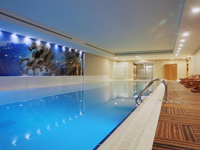 Sport & Fitness: Angenehm beheiztes Wasser im Poolbereich mit Innen- und Außenbecken sorgt für ein gesundes Badeerlebnis. Auch ein Kinderbadebereich ist vorhanden. Bequeme Liegestühle stehen auf der Terrasse bereit. Fitnessstudio, Gymnastik und Aerobic sind Teil des Sport- und Freizeitangebots der Unterbringung. Im Haus werden verschiedene Wellnessangebote wie Spa, Sauna, Dampfbad, Hammam, Schönheitssalon und Massage-Anwendungen offeriert.