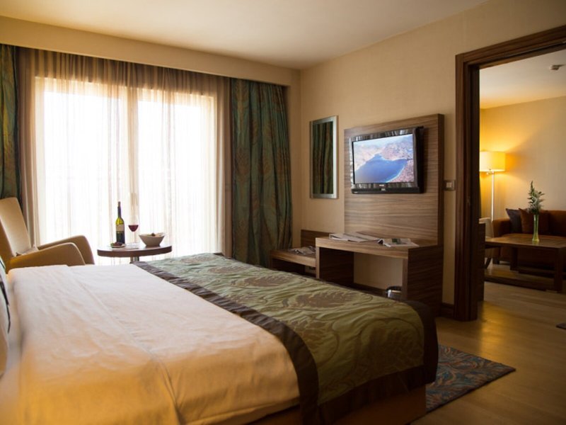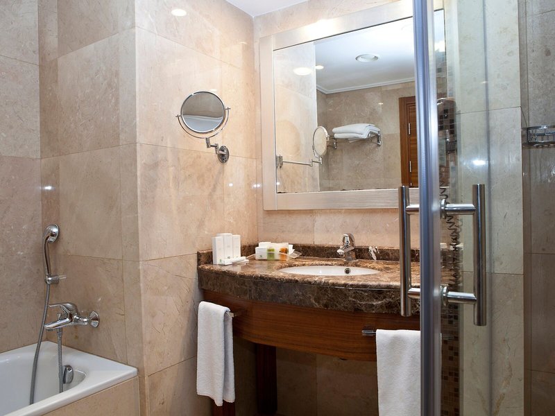 Vaše ubytovanie: Klimatizácia a kúrenie zabezpečujú príjemnú vnútornú klímu v izbách. Balkón je štandardným vybavením väčšiny izieb. Izby s kobercami majú manželskú posteľ. Prístelky je možné vyžiadať. K dispozícii je aj trezor a minibar. K dispozícii je aj mini chladnička a príslušenstvo na prípravu čaju/kávy. K dispozícii je aj žehliaca súprava a lis na nohavice. Telefón s priamou voľbou, televízor, rádio a WiFi (bezplatné) poskytujú najlepší komfort počas dovolenky. Kúpeľňa je vybavená sprchovacím kútom a vaňou, sušičom vlasov a županmi. K dispozícii sú aj bezbariérové izby s bezbariérovými kúpeľňami. Hotel ponúka rodinnú, nefajčiarsku a jednu fajčiarsku izbu.