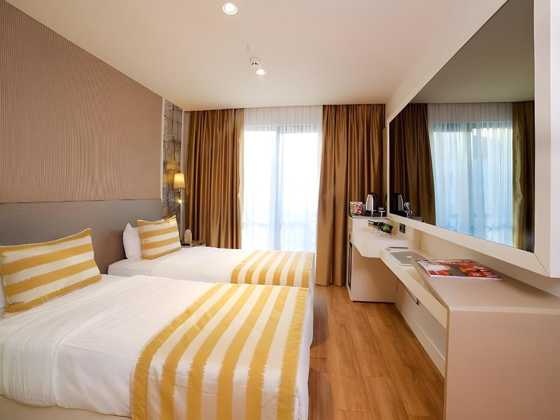 Vaše ubytovanie: Klimatizácia a kúrenie zabezpečujú príjemnú vnútornú klímu v izbách. Hostia si môžu vychutnať výhľad na mesto zo svojho balkóna alebo terasy. Izby majú manželskú posteľ, manželskú posteľ alebo manželskú posteľ. Prístelky je možné vyžiadať. K dispozícii je aj trezor, minibar a písací stôl. K štandardnému vybaveniu patrí aj zariadenie na prípravu čaju/kávy. Pre väčšie pohodlie hostí je k dispozícii lis na nohavice. K dispozícii je aj telefón, TV so satelitným príjmom a platenou možnosťou, rádio a WiFi. K vybaveniu izieb patria papuče. V kúpeľni so sprchovacím kútom a vaňou nájdete sušič vlasov. Kozmetické výrobky poskytujú extra pohodlie v kúpeľniach. Hotel ponúka rodinné, nefajčiarske a fajčiarske izby.