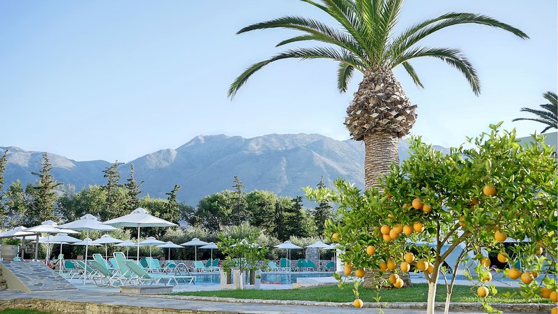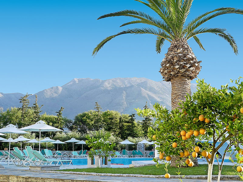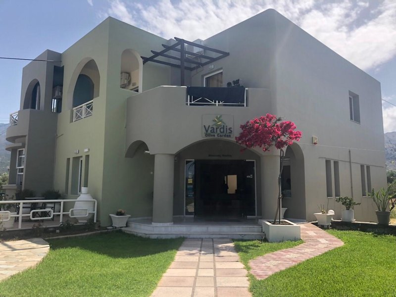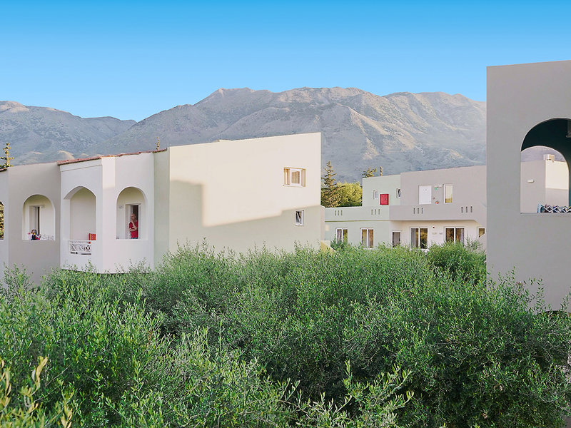 Lage: Inmitten eines grünen Olivenhains, nahe der Stadt Georgioupolis gelegen. Zum Sandstrand (mit Kieseln durchsetzt) sind es ca. 1 km, Einkaufs- und Unterhaltungsmöglichkeiten in unmittelbarer Nähe.