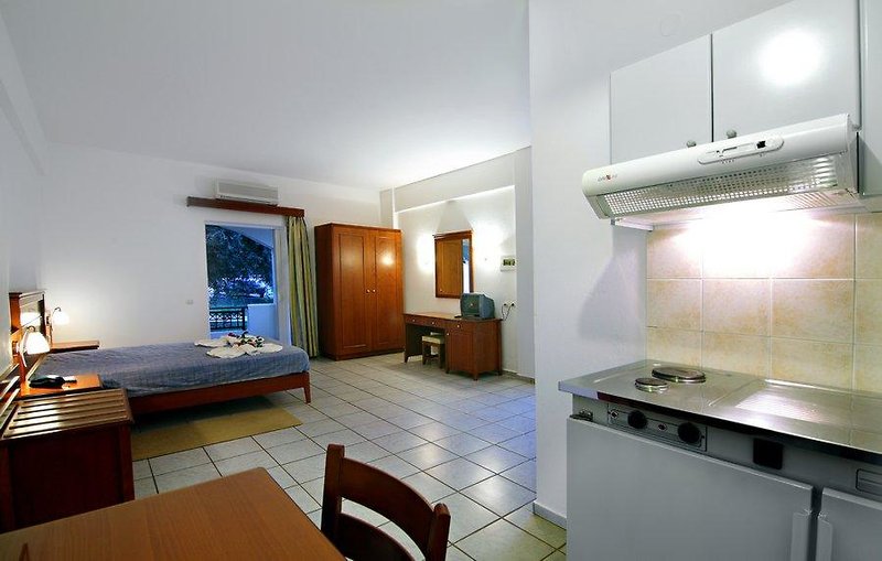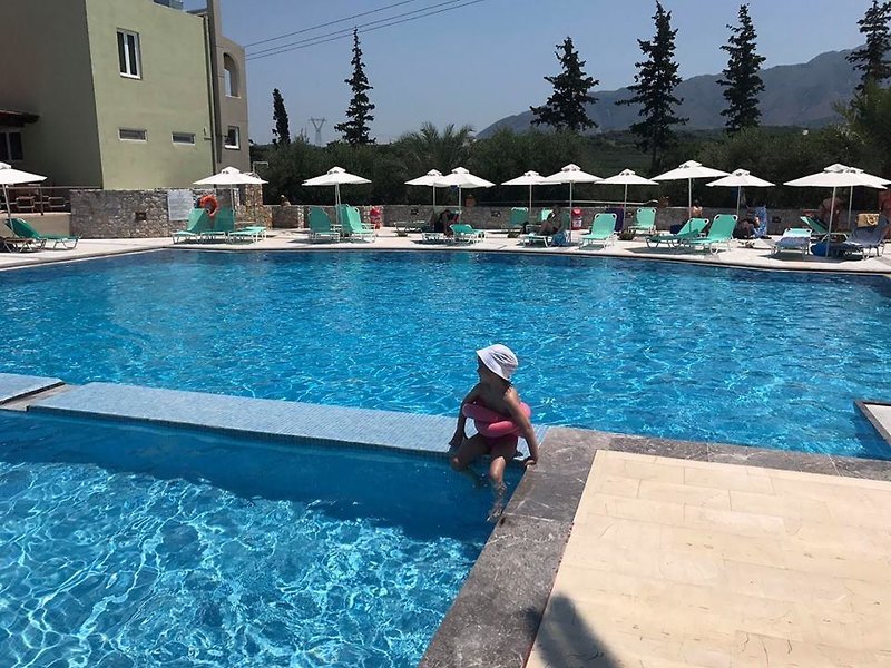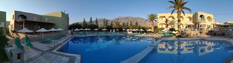 Poloha: Nachádza sa uprostred zeleného olivového hája, neďaleko mesta Georgioupolis. Piesočnatá pláž (popretkaná okruhliakmi), nákupné a zábavné možnosti v bezprostrednej blízkosti je vzdialená cca 1 km.