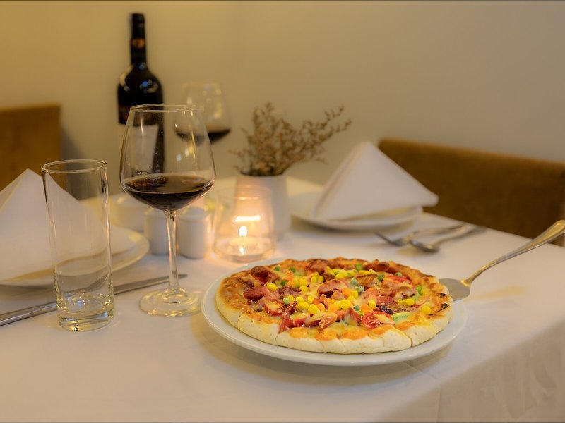 Jedlo a pitie: K dispozícii sú rôzne možnosti stravovania vrátane klimatizovanej reštaurácie, kaviarne a baru. Denne sa podávajú bohaté raňajky formou bufetu a obedy. Diétne jedlá a detské menu sú pripravené na požiadanie. Okrem toho sú k dispozícii špeciálne možnosti cateringu a občerstvenia. K dispozícii sú alkoholické nápoje.